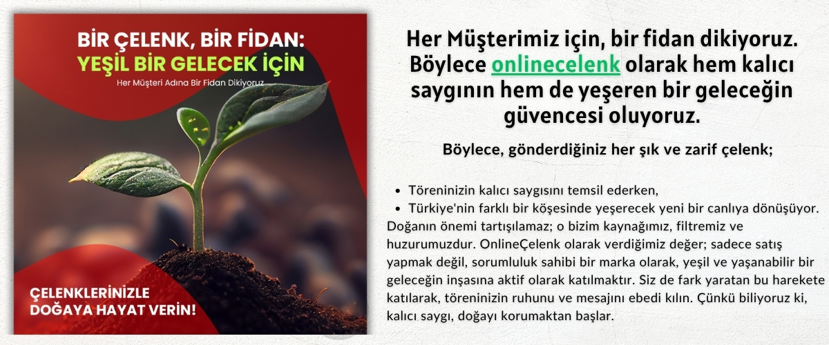 OnlineÇelenk için her çelenk bir atık değil, bir imzadır— estetiğin, güvenin ve anlamın birleştiği bir taahhüt belgesidir. Biz, doğayı koruyan sürdürülebilir ürünlerimizle, toplumsal bilinci yükseltmeyi ve çevresel sorumlulukla şıklığı bir araya getiren bir miras bırakmayı görev ediniyoruz.